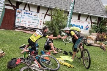Celou dobu vypadali hodně čerstvě, ale tady v cíli už na nich je znát určitý stupeň devastace. Prohlašují, že to bylo nádherný, opravdový dobrodružství uprostřed Evropy. A Sven sice přikyvuje, ale hned dodává, že už to určitě NIKDY nepojede!
