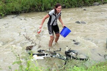70 Martina Josefa Veselá (971.34 km, 19:12:41): P10M10E10 Jede se báječne. Moc bych ještě jednou chtěla poděkovat Lubosovi, za nápoj, cukrik i chvilkovou společnost na cestě. Odpoledne jsem hledala kde se trosku umyju, když jsem tedy našla dobre přístupové místo neváhala jsem sejit k rece. Po chvilce mi něco simralo na noze a ja zjistila, ze stojím v hejnu raku! Doufám, ze přežili, protože jsem si v te vodě umyla nohy…