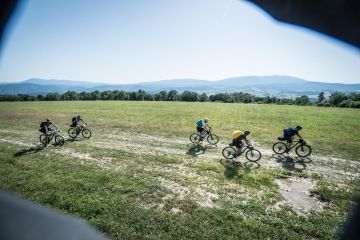 Pořadatelský cirkus letos čítá 4 auta. V sobotu v podvečer jsme dorazili do Nové Sedlice. Chvíli se čekalo na pana starostu, který přivezl klíče a mohli jsme tak na den obsadit místní kulturní dům. Proces prezentace Mílařů není snadný. Oproti „běžným“ závodům je potřeba každého vyfotit, zvážit a změřit tuk (to abychom v cíli rozeznali závodníky a čundráků :-)). Dopoledne jsme pak trávili stavbou startovního prostoru, abychom mu dali adekvátní „kulisy“. Postupně jsme odbavili všechny závodníky, popřáli jim štěstí, odstartovali závod a pustili se do úklidu. Zatímco týmy kameramanů a fotografů se vydaly stíhat peleton a lovit první atraktivní snímky v NP Poloniny a na nedaleké brody přes řeky Laborec a Ondavu, které ale zřejmě letos nebudou tak významnou překážkou jako před dvěma lety.