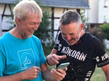 132 Tomáš Gothard (1527.09 km, 19:50:24): P7M8E5 pozdrav a velký dík na Cínovec, včera v noci vřelé přijetí, výborné jídlo, bajecná atmosféra a ten tvarohový koláč, mňam, mooooc děkuji