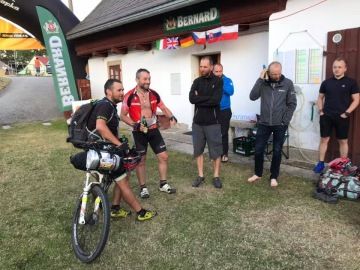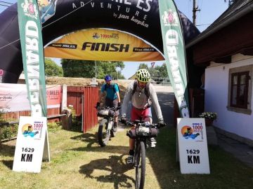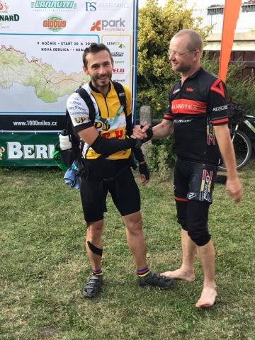 Po druhé odpoledne naštěstí do cíle dorazí dvojice nováčků Petr Havlíček a Matej Ženiš. Jsou šťastní, spokojení, vysmátí, takže naši náladu lehce pozvednou. Matej přijede na fatbiku, což je možná větší nesmysl než tandem, ten můžou přenášet dva, fatbike, který je podobně těžký nese Matej sám… Kluci sypou historky, do toho (s malým zpožděním) přijíždí Matejova žena Mirka…už víme, co znamená „mít zbrojní pas na ústa“ Mirka, radostí že až z Bratislavy dojela do Skalné, že Matej zvládl Míle a prostě z toho, že je svět krásný povídá a povídá! Ale hezky, sympaticky Zajímavý postřeh k dopravě v Česku: „vy snad rekonstruujete všechny silnice co tu máte. U nás na Slovensku se ty dotace rozkradou a aspoň nikdo neprudí na cestách s rekonstrukcemi!“.