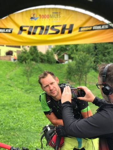 Konkrétně tím sedmým v cíli byl Ladislav Stach, který na třetí pokus dokončil celých 1000mil, což ho očividně potěšilo. Aby ne! Ale jak přiznal, bylo to trápení. Prý je hrozně snadné vzdát, obvzlášť v těchto podmínkách. Hlavně na CP2, když člověk dorazí promočený a unavený, má zázemí a šanci na bílý dres, je to těžké hledat chuť do druhé půlky. V podstatě prý jsou celé míle o hledání výmluvy, proč vzdát. S radostí se prý člověk zjistí, že ho píchá v koleni či v loupe v kříži, potenciálně by to mohl být dostatečný důvod proč odeslat tu SMS, že to prostě nejde dál…ale naštěstí to vždycky nějak šlo a vyšlo to až do konce. Vzpomínal i na situace, kdy mu bylo na trase nejhůř. Nejblíž k tomu zabalit byl ve Vizovicích, kdy přijel totálně promočený a představa, že zalehne někde pod strom a mokrý vleze v dešti do spacáku byla děsivá. Rozhodl se tedy zkusit najít nějaké ubytování, ale jezdil kolem Vizovic křížem krážem a nikde nic volného k dispozici nebylo! Zkusil tedy jistotu – hasičskou zbrojnici. Bohužel zde právě zapíjeli něčího potomka, dovolili mu tedy dát si sprchu, ale nic víc, což nic neřešilo. Když už úplně zoufalý stál uprostřed Vizovic a přemýšlel, jak ukončit své trápení, najednou přichází člověk a z dálky volá: „hele, Mílař!“. Prostě šel kolem nějaký fanda a najednou bylo kde spát! Zázraky se dějí….