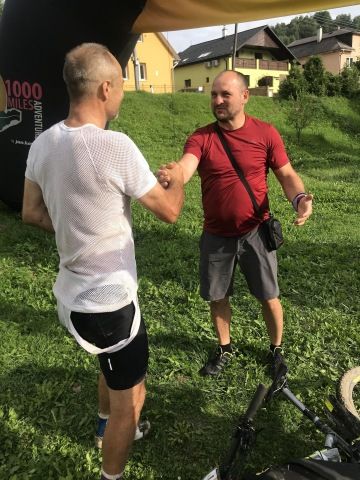 Dvě a půl hodiny po jedenácti dnech dorazil ještě Pavol Anderko, prvý Slovák letošního ročníku. Pavol jel podruhé a i on tak „dokončil celé Míle“. Na Pavla čekala v cíli rodina (respektive Pavol na ně, byl v cíli o něco rychleji). Při guláši tak měl na krku medaili a jak se patří rozléval hruškovici (asi v návaznosti na nějakou příjemnou vzpomínku na tuto oblast zvolil tu z vizovické palírny :-)). Pavol naopak závod pojal trochu víc na pohodu, spával v penzionech nebo na checkpointech s taktikou jet přes den co to půjde a v noci pořádně odpočinout. Jak sám poznamenal, na blbnutí už je příliš starý 🙂 No bylo z toho krásné deváté místo!