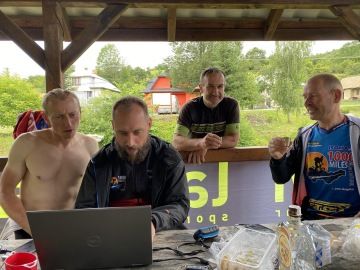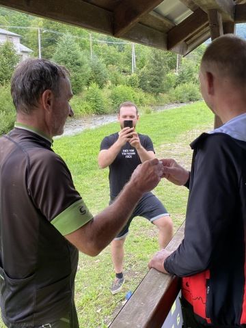 136 Josef Šnobl (1669.64 km, 15:27:22): P7M9E6 dnesnì den to byl trochu triatlon,ràno bylo plavàvànì pres Laborec. S kolem a batohem,v cyklo botech se plave blbe.Nakonec jsem doplaval a muzu si uz v cìlì popijet kofolu s rumem. Bylo to narocny,ale …kràsny