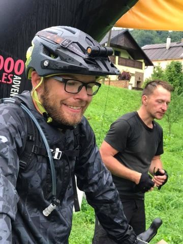 Pepa Mikulín i Jarda Křivský už doma mají bílé tričko, ale až letos si na Afterparty přijdou pro žluté. Zajímavostí u Jardy je, že jel na gravel biku. Zpětně to hodnotí jako dobrý nápad, jen ve sjezdech trochu ztrácel, na pevných cestách (a že jich letos bylo) naopak měl výhodu. Trochu problém byl, že před půlkou sjel plášť natolik, že musel řešit nový a nesehnal lepší, než hladký. Takže celé Slovensko vlastně klouzal a doklouzal do cíle na 24. místě 🙂