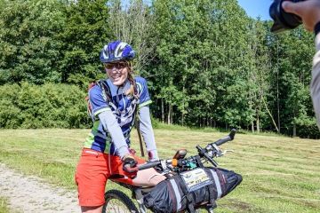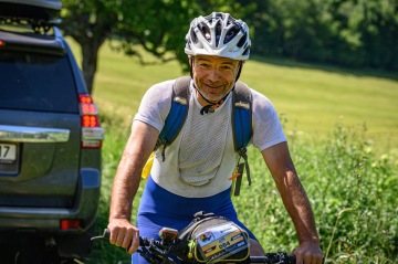 34 Tomáš Doležal (1181.20 km, 20:02:39): P9M9E8. Jsme na Slovensku. Nádherná příroda, fantastické výhledy. Těžká etapa. Prudké kopce, bláto. Mám za sebou první salto přes řidítka. Bohudíky bez následků. Spíme v Čavoji. Mladý pár v hospodě nám nabídl, že můžeme přespat v jejich karavanu na zahradě a osprchovat se u nich doma. Nemám slov a jsem vděčný.
