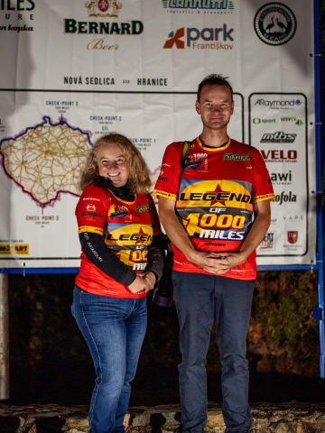 Následovalo předání cen letošní fotosoutěže a poté jsme se pustili do vyhlášení výsledků závodu. Předali jsme dresy finisherům 500 Miles. Potom jsme předali trička finisherům 1000 Miles. Zlatým hřebem vyhlášení bylo představení dalších závodníků, kteří vstoupili do klubu LEGEND (tedy závodníků se sedmi mílařskými starty), přivítání dalších dobrovolníků do síně slávy DOBROVOLNÍKŮ a v neposlední řadě jsme předali zelené tričko Milanu Holuškovi za absolvování všech 3 disciplín tj. MTB, koloběžka a chůze/běh.
