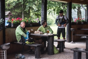 5 Štěpán Mareček (1093.35 km, 19:38:11): Ani dneska jsem Hostýnským a Vizovickým vrchům nepřišel na chuť. K tomu docela pršelo. Všude spousta bahna. Jsem rád, že mám tenhle úsek za sebou. Večeře před hranicí a valime na Slovensko a CP3