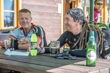 160 Petr Kubela (830.70 km, 20:22:08): P7M9E8 Dnes dojezd do CP2/F500. Prebalit kolo a sebe, vecere, pivko, s nekterymi rozlucka a valim dal! Nejaka bolest/problem tam je po dnesku ale uvidime…snad zitra bude lip. Drzte palce..prave teprve teď zacinaji „míle“.Diky za podporu