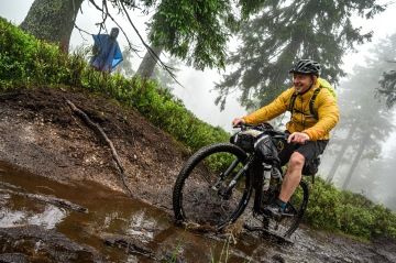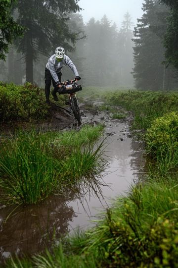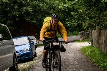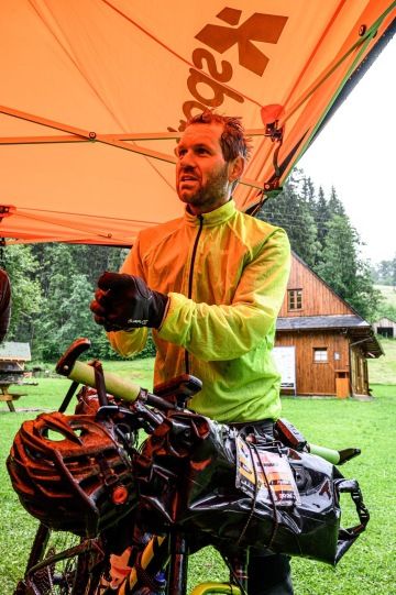Ale jak známo, Slovensko rozhoduje a nakonec se zdá, že se bude i závodit o pořadí. Kai-Uwe chtěl dorazit na CP3 hlavně za světla a to se povedlo. Na druhém břehu se objevil kolem 18 hod. Nezkušeně sešel k břehu na prvním vhodném místě, to však k brodění samotnému je spíše velmi nevhodné. Naivně si vyzul boty, připnul je k rámu kola, vytáhl nohavice, kolo hodil na záda a vstoupil do řeky. Po dvou krocích byl ve vodě nad pas (tak akorát, aby namočil veškerý obsah kapes dresu). Vylezl tedy na břeh, už mokré boty nazul a přešel s vodou zhruba po prsa.