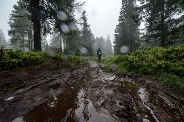Budíček před pátou, CP2 ožívá. Někteří přenocující závodníci vstávají a balí. První odjezd v 5.22. Co přes noc uschlo, bohužel po prvních pár kilometrech opět vlhne, neboť nepřestává pršet.